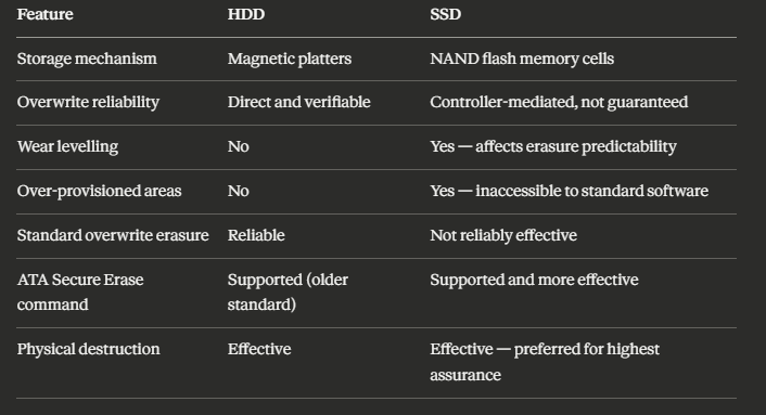 Here is the full explanation — what makes SSDs different, why standard erasure approaches can fail, what actually works, and what your documentation should look like to be defensible under UK GDPR.