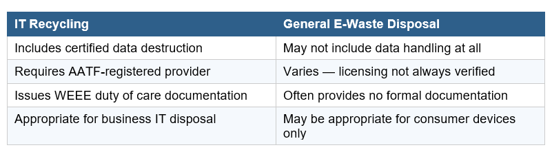 IT Recycling vs E-Waste Disposal: Understanding the Difference